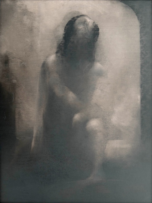 mine de pierre noire et gesso sur carton