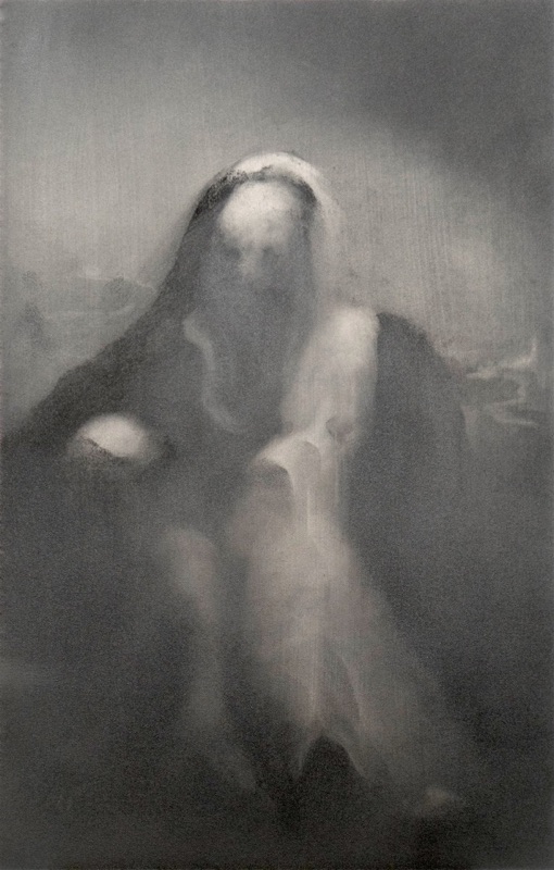 mine de pierre noire et gesso sur carton