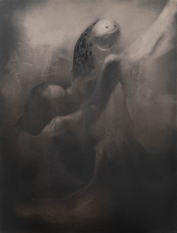 mine de pierre noire et gesso sur carton