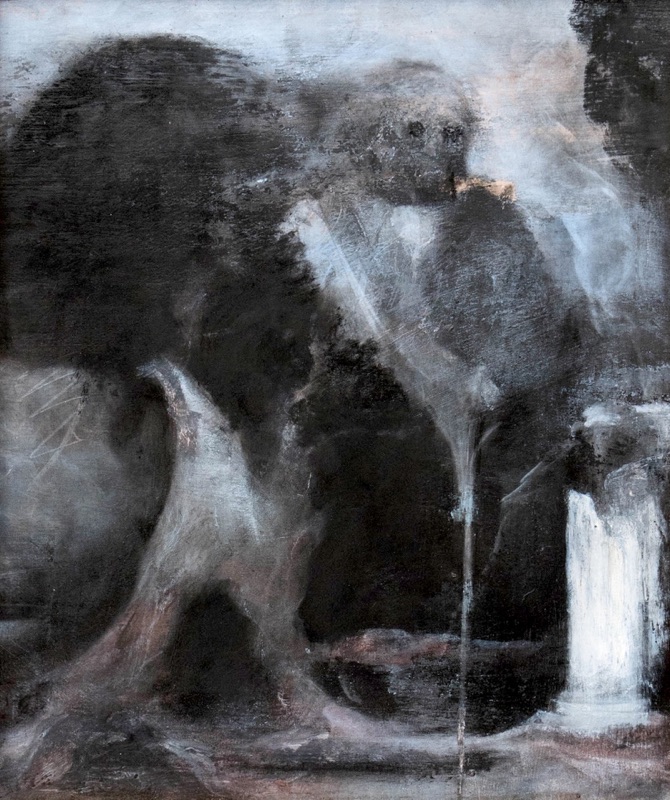 mine de pierre noire et gesso polychrome sur carton