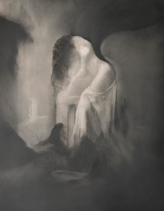 mine de pierre noire et gesso sur carton
