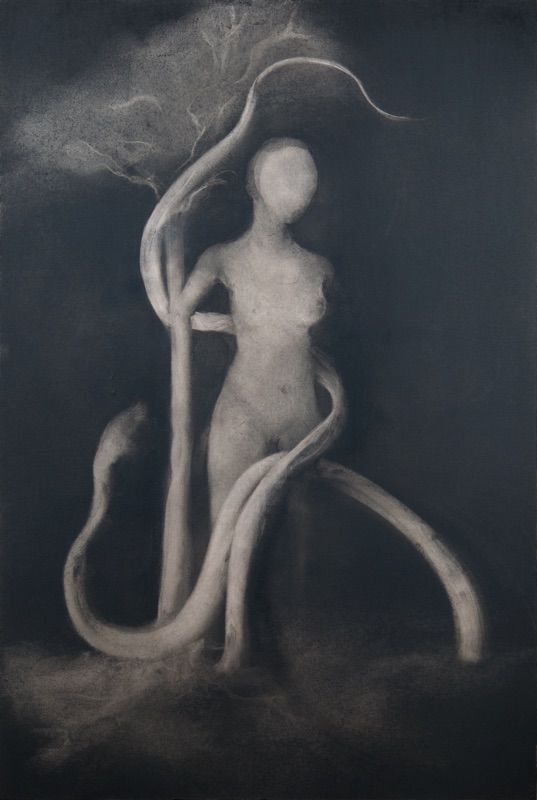 mine de pierre noire et gesso sur carton
