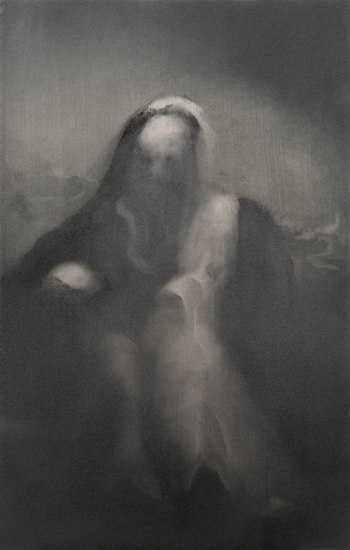 mine de pierre noire et gesso sur carton