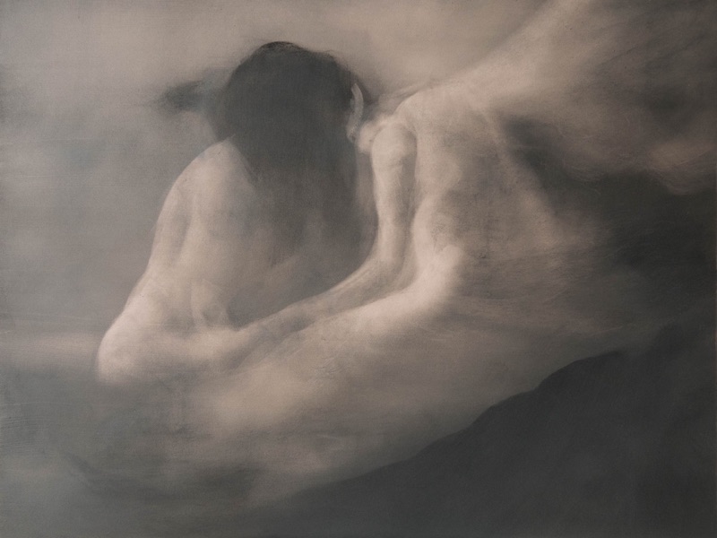 mine de pierre noire et gesso sur carton