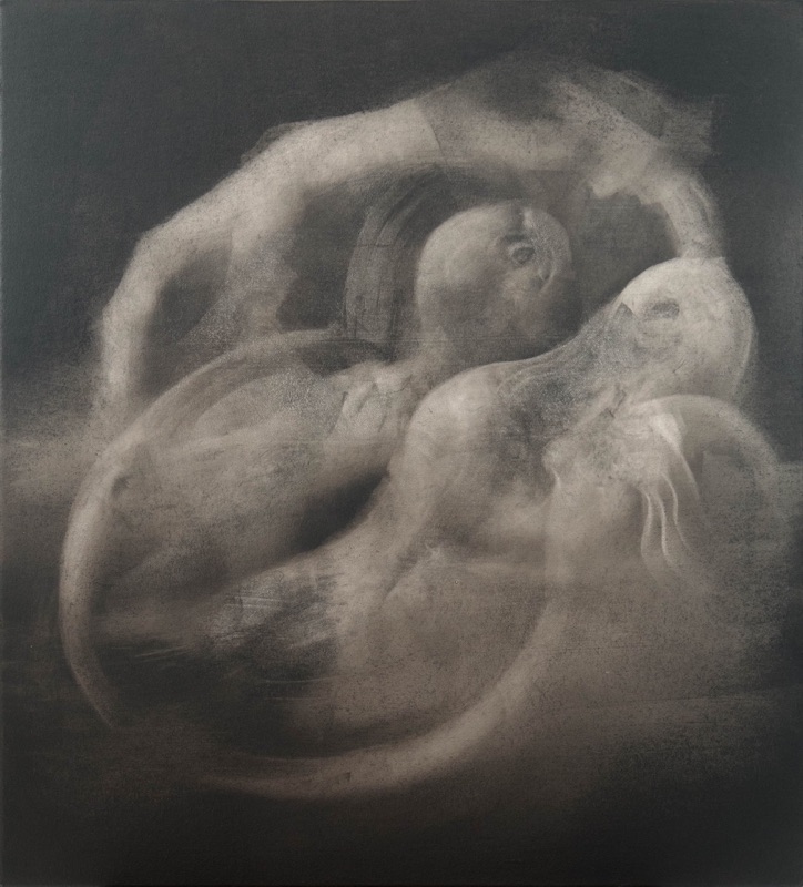 mine de pierre noire et gesso sur carton